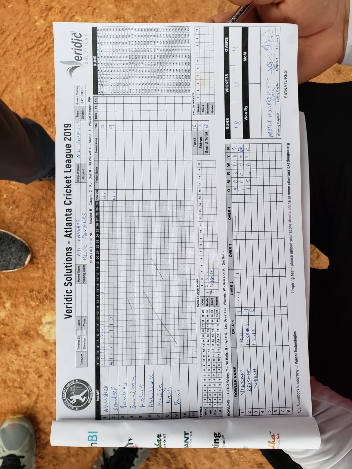V Virtue ATL Knights (33/8 in 8.3 ov)